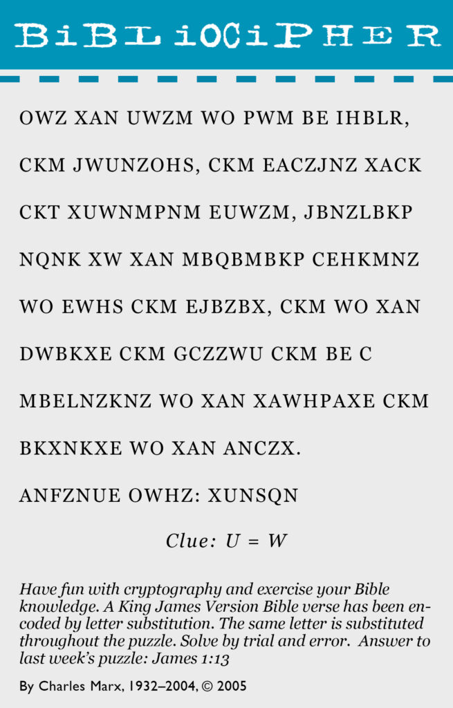 You have six attempts to guess a five-letter word found in the Bible (no proper nouns). After each guess, the letter boxes will change color: gray for a letter not found in the word; yellow for a letter found in the word but in the wrong spot; and green for a letter in the right spot.
