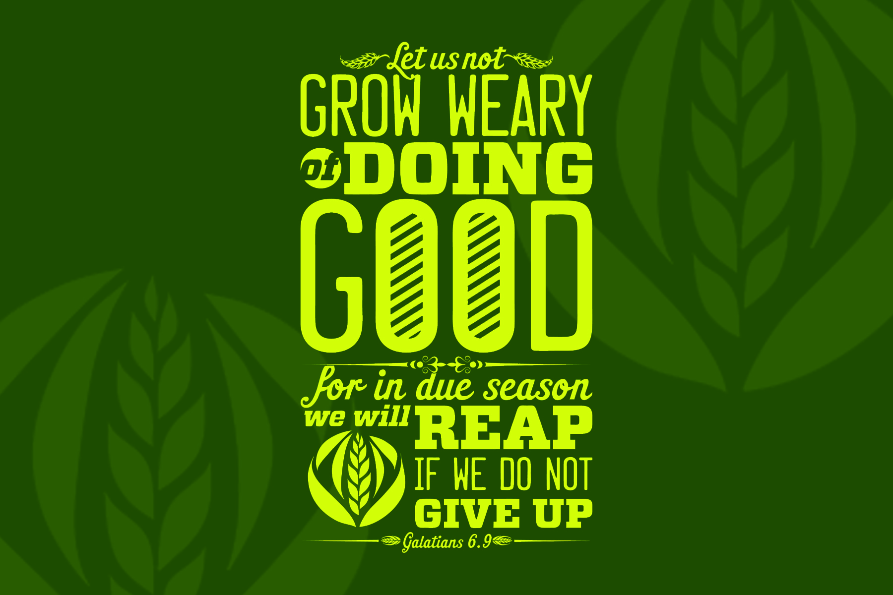 - “Let us not grow weary of doing good, for in due season we will reap, if we do not give up.” (Galatians 6:9, ESV)