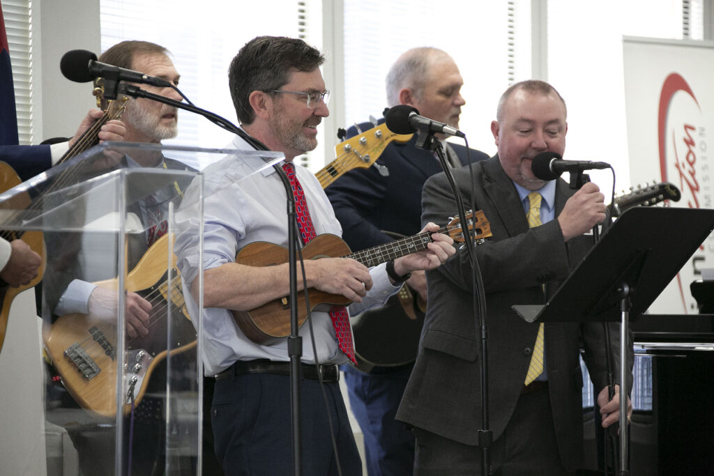 The House Band from the Mississippi House of Representatives led a time of worship with folksy hymns and praise songs, followed by Shawn Parker, Executive Director-Treasurer of the Mississippi Baptist Convention Board, who prayed over the legislators.