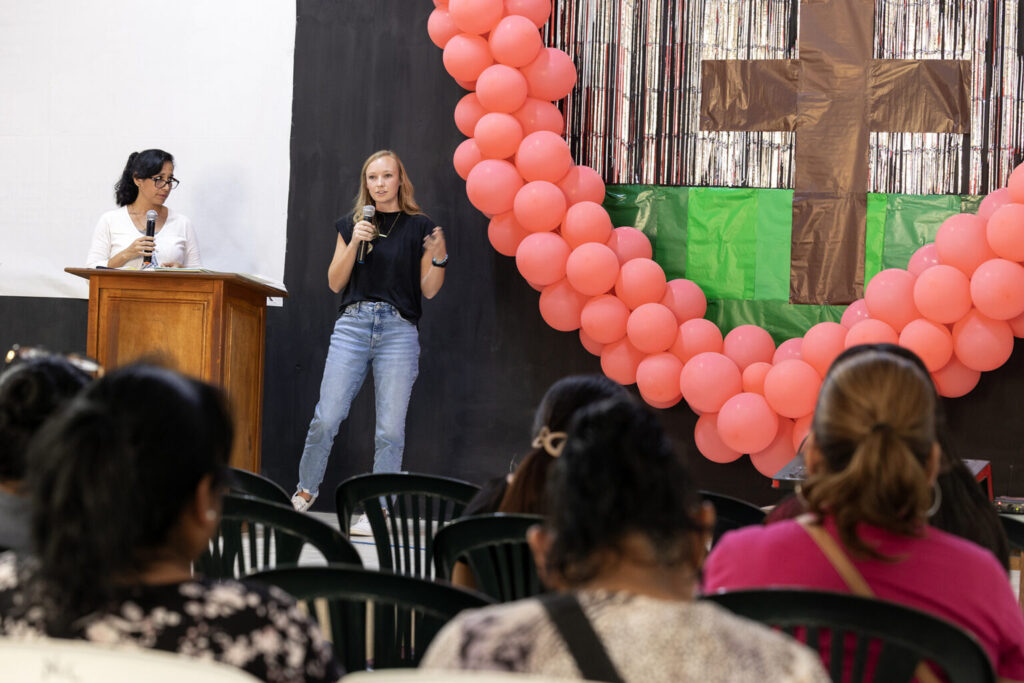 Elizabeth Westbrook, right, from Alabama, speaks during a women’s conference held at a Baptist church in Lima, Peru. Throughout the conference women from the surrounding community heard about their worth in Christ and how their faith could impact their families. (Photo credit: IMB)